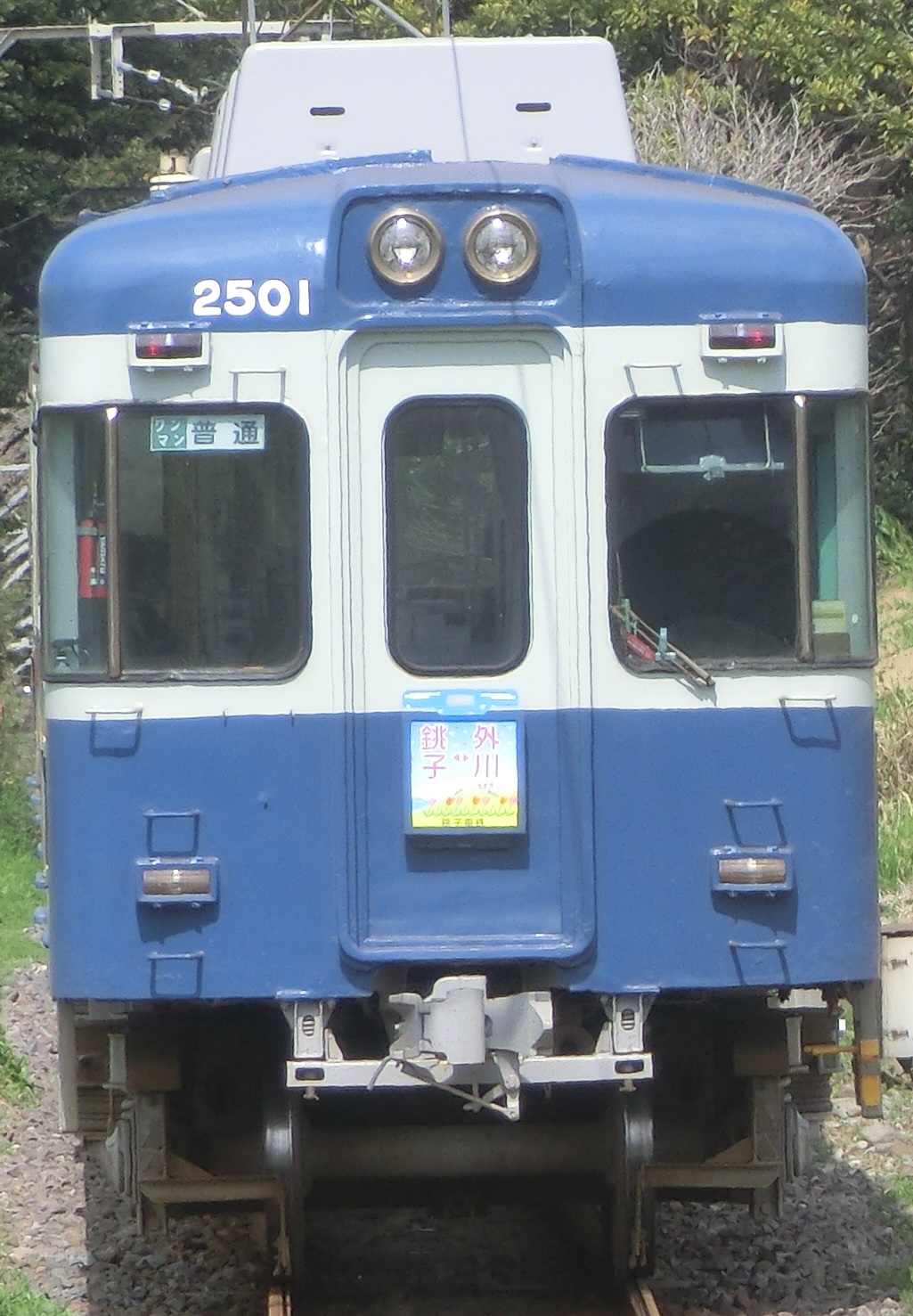 5人は犬吠駅に戻ってきた。犬吠駅では某有名Youtuberとのコラボグッズが多数販売されていた。これも銚子電鉄の公式チャンネルの影響なのだろうか。私たちも、銚子電鉄のグッズをいくつか購入した。あの有名なぬれ煎餅はもちろん他4~5点。天気もすっかり晴れ、雲が随分と減った。 しばらく経って、電車がやって来た。どうやら外川方面へ行く電車のようだ。 2001Fは気分良く 「案内しますよ」 と外川方面へ連れてってくれた。 外川駅に到着。出迎えていたのは昔ながらののどかな駅舎にどこか風情のある時刻表だ。駅の外に出てみると保存されているデハ801号に千葉県知事の選挙のポスターだ。丁度この頃は千葉県知事の選挙が話題になっている時期でもあり、政見放送ではそれぞれの候補者による個性的な政見放送をみる事ができたのも思い出深い話である。2001Fは数分後 「折り返すから早く乗って~」 と5人に呼びかける。5人を乗せた2001F銚子行きは外川駅を後にしていった。